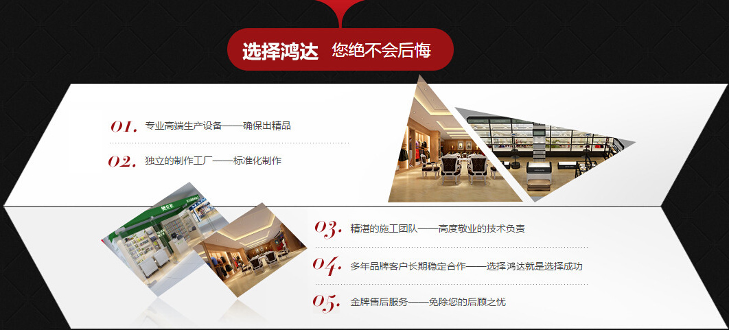 成都博鑫鴻達展柜有限公司成立于2016年,坐落于成都市新都區(qū)斑竹園鎮(zhèn)順江工業(yè)園區(qū),生產廠房占地面積50余畝,公司擁有員工10余名,公司獨立生產的產品有:展柜、倉儲貨架、庫房貨架、倉庫貨架、汽車4S貨架、超市貨架、賣場貨架、******鈦合金貨架、鈦合金旋轉柜、展柜展示柜、各種展架展示架、從事倉儲的研制、生產及銷售。